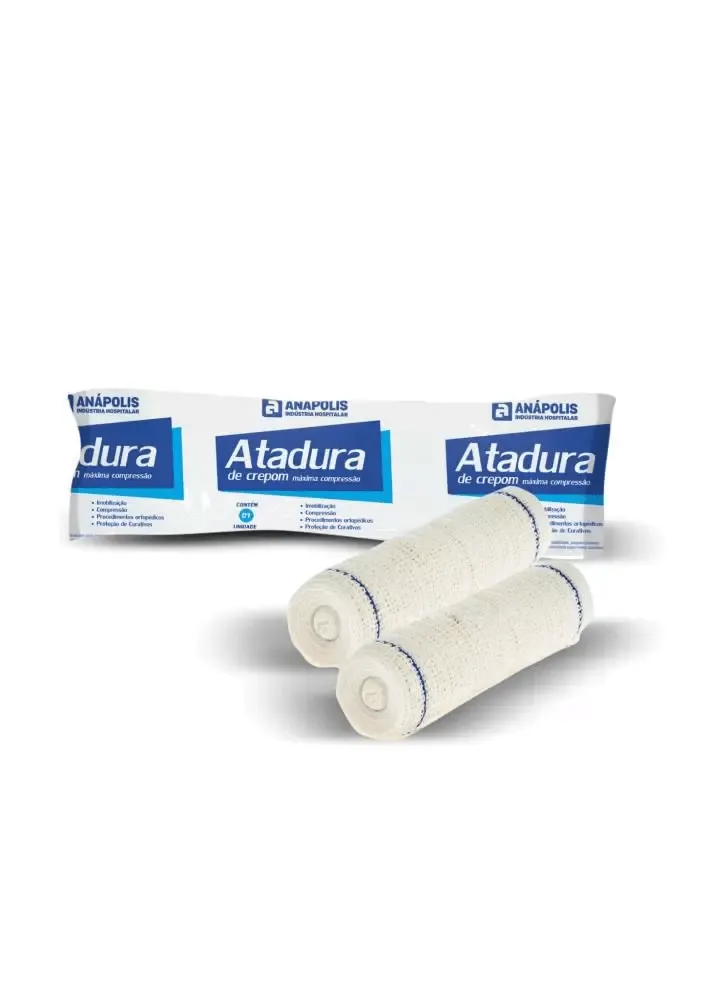 Atadura de crepe de 10 centímetros de largura por 1,80 metros de comprimento.